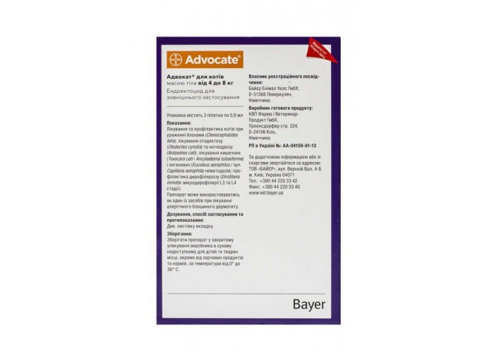 Bayer Advocate (Байер Адвокат) капли для кошек.