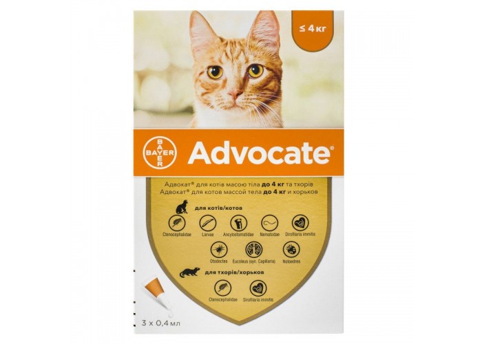 < 4 кг Адвокат для кошек до 4 кг 0,4 Минимум 10 Минимум 1
