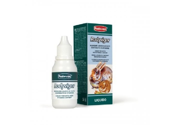 Padovan Rodyvigor – это дополнительный жидкий корм (прикорм) для карликовых кроликов, морских свинок, хомяков, белок и других мелких грызунов, помогающий сбалансировать рацион и усилить питание в периоды стресса, усталости или недостатка свежей пищи. Продукт содержит глюкозный сироп, фруктозу и декстрозу, обеспечивая быстрый источник энергии и улучшая общее состояние организма. Рекомендуемая дозировка: 4–5 мл на каждые 250 г основного корма или литр воды (примерно 8–10 капель на 100 мл поилки), взболтать перед применением. Padovan Rodyvigor обладает высокой влажностью (93%), низким содержанием белка (1%) и жирами (0,5%), а также обеспечивает животных необходимыми витаминами и минералами: витамины A, D3, E, C, B1, B2, B6, B12, ниацин, фолиевая кислота и холин. Возможные изменения цвета или размера частиц не влияют на качество продукта. Продукт легко усваивается и эффективно поддерживает энергию и здоровье мелких грызунов.