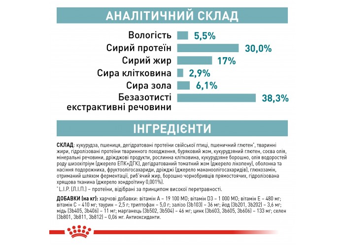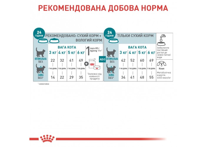 Royal Canin Ageing 11+ - сухой корм супер-премиум класса, созданный специально для взрослых и пожилых кошек старше 11 лет. Этот полнорационный корм разработан для поддержания здоровья зрелых питомцев. Специальный комплекс антиоксидантов, включая полифенолы зеленого чая и лицопен, помогает задержать процессы старения, поддерживая здоровье кошек на протяжении их зрелой жизни. Кроме того, добавленные хондропротекторы поддерживают здоровье суставов, обеспечивая максимальный комфорт в движении. Этот корм также способствует здоровью почек благодаря адаптированному уровню фосфора, что особенно важно для стареющих питомцев. Высокая вкусовая привлекательность и уникальная двойная текстура крокет помогают стимулировать аппетит вашей кошки, обеспечивая ей не только полноценное питание, но и удовольствие от еды.