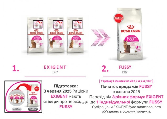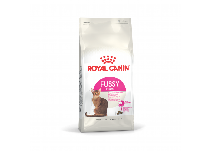Royal Canin (Роял Канин) Fussy Exigent - это сухой корм супер-премиум класса, созданный специально для привередливых кошек. Подходит для взрослых питомцев в возрасте от 12 месяцев до 7 лет. Корм обладает уникальной формулой, разработанной для учета чувствительности кошачьего вкуса. Особенностью этого продукта являются два типа крокет, которые обеспечивают различные ощущения в ротовой полости, что способствует лучшему восприятию пищи животным. Одна из ключевых особенностей Fussy Exigent - это поддержка идеального веса кошки. Благодаря умеренной калорийности корма ваш питомец сможет сохранить оптимальный вес, что важно для его здоровья и активности. Кроме того, этот корм заботится о красоте и здоровье шерсти вашей кошки. В составе присутствует биотин, Омега 6 жирные кислоты и специальный комплекс активных питательных веществ, которые способствуют красоте и блеску меха, делая вашего питомца еще привлекательнее и здоровее.
