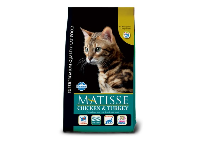 Farmina Matisse Cat Chicken & Turkey — это сухой корм для кошек, специально разработанный для удовлетворения пищевых потребностей взрослых кошек. Этот корм для кошек изготовлен из высококачественных, полностью натуральных ингредиентов, тщательно отобранных для обеспечения сбалансированного и полноценного рациона вашего кошачьего компаньона.