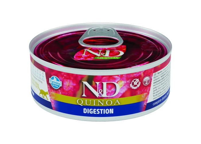 Влажный корм для кошек Farmina N&D Quinoa Digestion Lamb & Fennel Adult 80 г – это специализированный консервированный рацион, созданный для кошек с чувствительным пищеварением и экзокринной недостаточностью поджелудочной железы. Формула сочетает нежное мясо ягненка, полезную киноа, артишок и фенхель, которые способствуют легкому усвоению, снижают нагрузку на пищеварительную систему и помогают восстанавливать баланс микрофлоры кишечника. Благодаря добавлению гидролизованного рыбного белка и пребиотиков (ФОС, МОС), корм поддерживает здоровое пищеварение, обеспечивает комфорт и хорошее самочувствие любимца. Сбалансированный комплекс витаминов и минералов в составе укрепляет иммунитет, поддерживает жизненную активность и всеобщее благосостояние. Приготовление на пару и современная стерилизация позволяют сохранить натуральный вкус и пользу ингредиентов, делая корм особенно аппетитным. Farmina N&D Quinoa Digestion не содержит зерновых, каррагинана, искусственных загустителей и BPA, поэтому является безопасным и максимально натуральным выбором для ежедневного кормления. Это сбалансированное решение, объединяющее заботу о здоровье пищеварительной системы и удовольствии от питания.