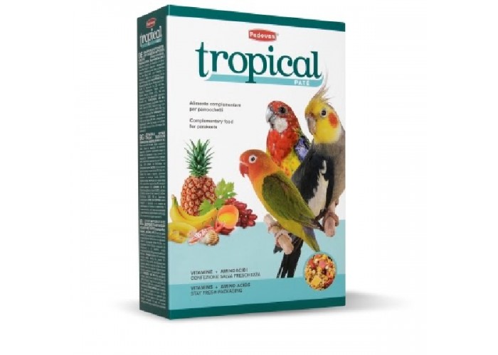 Padovan Tropical Patee – мягкий корм для дополнительного кормления средних попугаев, обеспечивающий повышенное содержание питательных веществ, необходимых птицам во время линьки, размножения или стрессовых периодов. Продукт также подходит для ежедневного добавления рациона, способствуя улучшению общего состояния, активности и здоровья птиц. Корм легко усваивается благодаря мягкой текстуре и простой в использовании – достаточно насыпать его в кормушку, обеспечив птице свободный доступ к пище и свежую воду каждый день. Padovan Tropical Patee также подходит для других зерноедных птиц средних размеров и может использоваться как регулярный дополнительный источник питательных веществ. Продукт уже содержит основные нутриенты, дополнительные витамины следует применять только в периоды интенсивной нагрузки по консультации ветеринара.