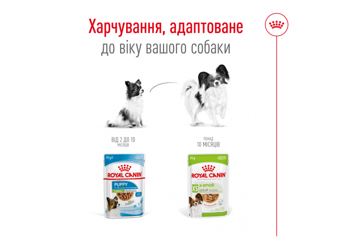 Влажный корм Royal Canin X-Small Adult с домашней птицей создан специально для взрослых собак миниатюрных пород от 10 месяцев до 8 лет. Благодаря нежным кусочкам в соусе этот рацион не только аппетитен, но удобен в потреблении даже для очень мелких челюстей. Формула разработана с учетом особых потребностей маленьких собак: она содержит высокоперевариваемые нутриенты, обеспечивающие максимальное усвоение и поддержание здоровья пищеварительной системы. Корм помогает поддерживать оптимальный вес благодаря сбалансированному содержанию белков, жиров и углеводов, а также включает в себя комплекс необходимых витаминов и микроэлементов для активной жизни. Омега-3 жирные кислоты (EPA и DHA) улучшают состояние кожи и делают шерсть блестящей и здоровой. Удобные паучи обеспечивают легкое порционирование и сохраняют свежесть корма, что делает корм комфортным для владельца и вкусным удовольствием для любимца.