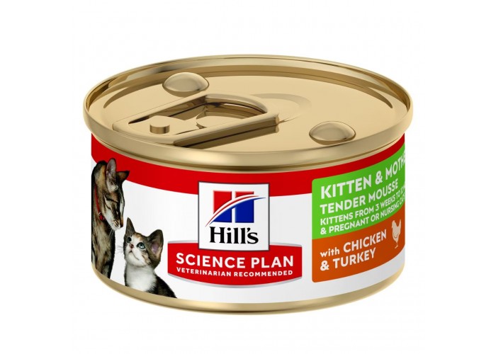 Hill’s Science Plan Kitten & Mother Tender Mousse рекомендований для годування кошенят і вагітних або годуючих кішок. Не рекомендується для тривалого годування дорослих котів, якщо немає підвищеної потреби в енергії.