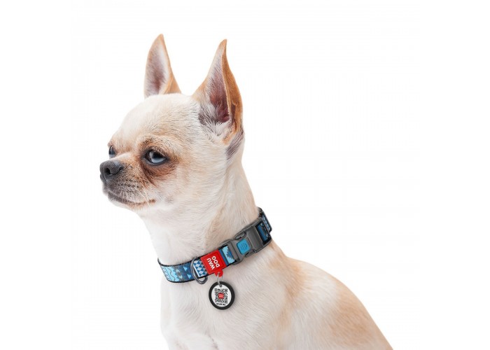 Нашийник WAUDOG Nylon з QR паспортом, малюнок "Етно синій", пластиковий фастекс
