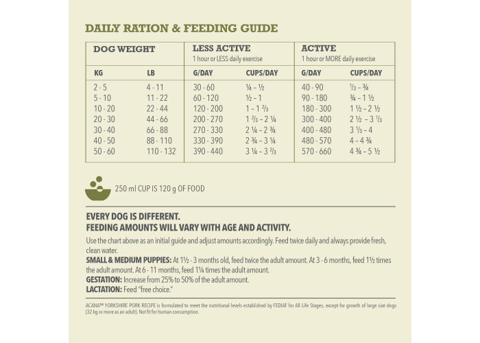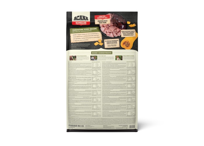 Acana Single Yorkshire Pork - високоякісний гіпоалергенний сухий корм для собак усіх порід та вікових груп. Він заснований на єдиному джерелі білка - свинині, ідеальному для собак з алергією на інші м'яса. Цей холістик-корм забезпечує збалансоване харчування завдяки вмісту всіх необхідних поживних речовин. Головний інгредієнт – свинина, багата білком, вітамінами та мінералами. Фрукти та овочі, такі як яблука, гарбуз та шпинат, збагачують корм вітамінами та антиоксидантами, підтримуючи здоров'я шкіри та вовни. Гіпоалергенна формула, позбавлена злаків та штучних добавок, робить його безпечним для чутливих собак. Вміст високого рівня білка та жирів підтримує м'язову масу, імунітет, здорову шкіру та блискучу шерсть. Acana Single Yorkshire Pork - вибір для здорового та активного способу життя вашого собаки.