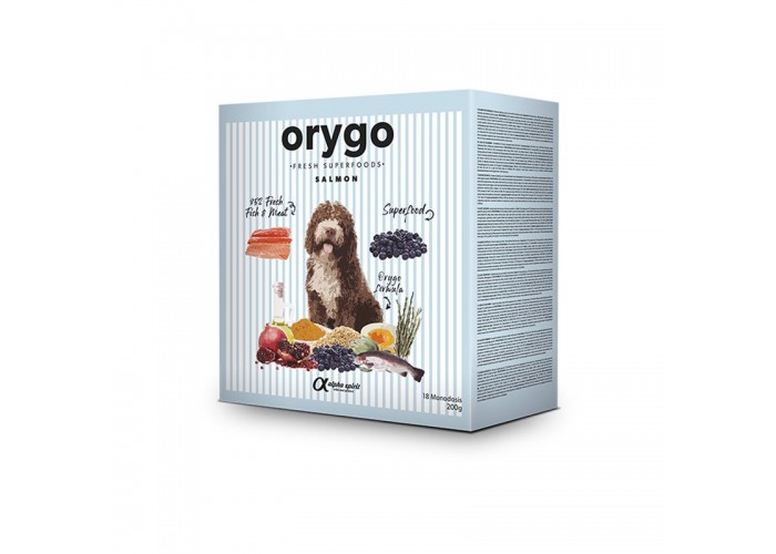 Orygo Salmon & Blueberries — натуральний, збалансований корм для дорослих собак усіх порід, створений для підтримки здоров’я та гарного самопочуття. Виготовляється методом холодного віджиму зі 100% свіжих інгредієнтів, що зберігає природну користь продуктів. Містить 85% свіжого м’яса — лосось (55%) і курятину (30%), включаючи м’язове м’ясо, серце та печінку, які забезпечують повноцінний білок, таурин, залізо та вітаміни. Суперфуд чорниця багата антиоксидантами, які сповільнюють старіння клітин, зміцнюють імунітет, підтримують здоров’я сечовидільної системи та мають протизапальні властивості. Ягоди містять клітковину, багато вітамінів і мало калорій, що робить їх ідеальними для щоденного раціону. Формула з пребіотиками сприяє здоров’ю мікрофлори кишківника. Корм не містить зерна, глютену, штучних барвників і ароматизаторів, підходить навіть вибагливим собакам, забезпечуючи їх усіма необхідними поживними речовинами.