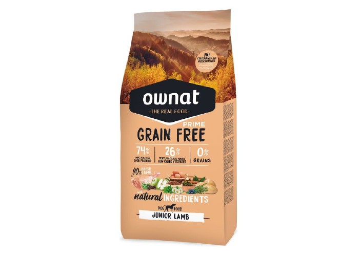 Ownat Grain Free Puppy Lamb — сухий корм для цуценят (від 2–3 місяців до завершення фази росту) з чутливістю або непереносимістю курячого м’яса, містить 40% свіжої баранини, багатий на білки та енергію, що задовольняє підвищені потреби зростаючого організму. Формула без зернових максимально наближена до природного раціону, легко засвоюється і підтримує нормальний розвиток. Корм містить свіжі фрукти як джерело антиоксидантів, лікарські трави для поліпшення травлення, бобові — рослинні білки та вітаміни, насіння льону — омега-3 і омега-6 для шкіри та шерсті, пивні дріжджі — для імунної підтримки, яйця — білки високої біологічної цінності та морські водорості — джерело органічних мінералів. Виготовлений із натуральних інгредієнтів та свіжого м’яса, без барвників, консервантів і штучних добавок, забезпечує чудовий смак та високу засвоюваність.