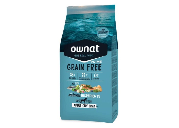 Ownat Grain Free Fish — це повнораціонний сухий корм для собак усіх порід, з високим вмістом свіжої жирної риби (35%), яка забезпечує білки високої біологічної цінності, чудовий смак і багата на омега-3 жирні кислоти для здоров’я шкіри та блиску шерсті. Формула без зернових максимально наближена до природного раціону собак: багата білками та інгредієнтами тваринного походження, з низьким вмістом вуглеводів, що підтримує оптимальне травлення та засвоєння поживних речовин. Корм збагачений свіжими фруктами, лікарськими травами, бобовими, насінням льону, яйцями, пивними дріжджами та морськими водоростями, що сприяє імунітету, обміну речовин, здоров’ю шерсті та шкіри. Без барвників, консервантів і штучних добавок, цей корм забезпечує збалансоване та натуральне харчування для щоденного раціону вашого собаки.