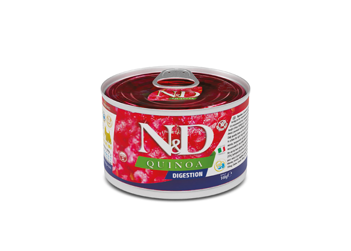 Вологий корм для собак Farmina N&D Quinoa Digestion Lamb & Fennel Adult Mini 140 г – це спеціалізований беззерновий раціон, створений для дорослих собак дрібних порід із чутливим травленням та ендокринною недостатністю підшлункової залози. Формула поєднує ніжне м’ясо ягняти, гідролізований рибний білок і насіння кіноа, забезпечуючи організм високоякісним білком, клітковиною та цінними поживними речовинами. Артишок і фенхель сприяють нормалізації травлення, а пребіотики (FOS і MOS) підтримують здорову мікрофлору кишечника. Хондроїтин і глюкозамін піклуються про здоров’я суглобів, що особливо важливо для активних маленьких собак, а екстракт зеленого чаю забезпечує антиоксидантний захист та зміцнює імунітет. Корм не містить зернових, глютену, штучних добавок і консервантів, забезпечуючи безпечне та збалансоване харчування.