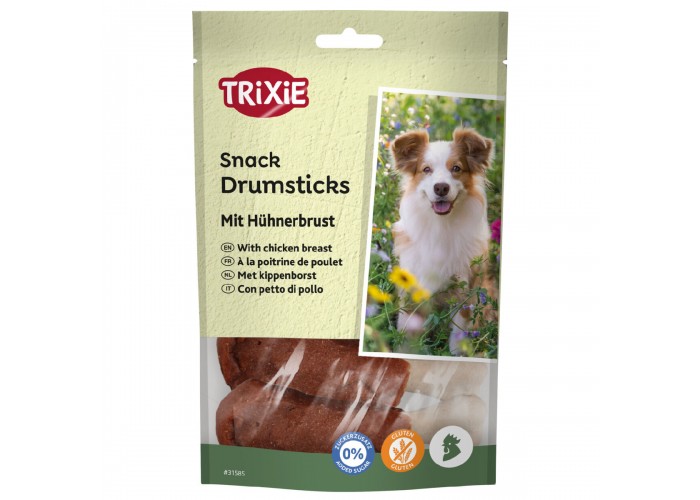 Ласощі для собак Trixie Premio Chicken Drumsticks - це 100% натуральні курячі кісточки, які містять 59% м'яса. Вони багаті білками, вітамінами та мікроелементами, не містять глютена та цукру, і не спричиняють алергічних реакцій. Ці ласощі сприяють очищенню зубів від нальоту. Рекомендовано використовувати як добавку до основного корму або як заохочення для вашого улюбленця.