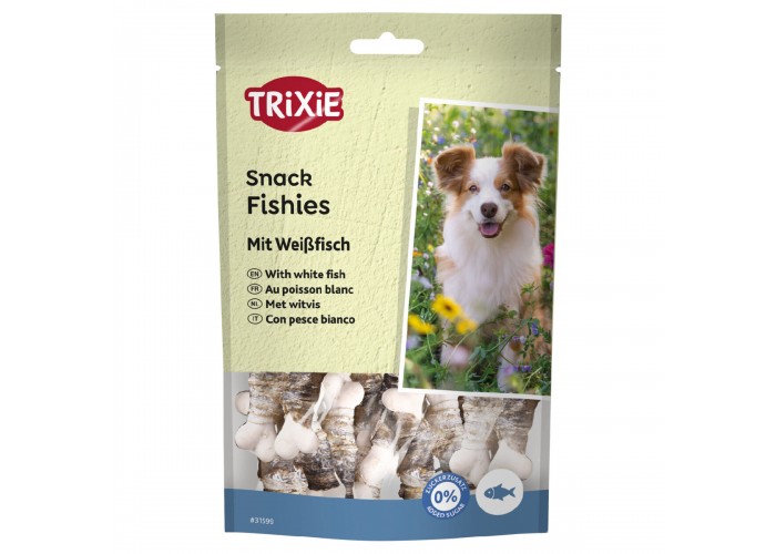 Ласощі для собак з рибою Trixie Premio Fishies - це маленькі кальцієві кісточки з високим вмістом риби, які гарантовано подарують задоволення вашому улюбленцю. З над 45% вмістом риби та використанням продуктів високої якості, ці ласощі багаті білком та вітамінами, не містять цукру, що робить їх ідеальними для собак з алергіями. З мінімальним вмістом жиру (менше 2%) вони також сприяють очищенню зубів від нальоту. Рекомендується як додаток до основного корму або як заохочення для вашого пухнастого друга.