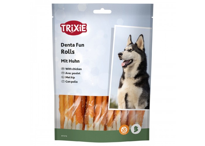 Ласощі Trixie Denta Fun Mini – це палички для чищення зубів із куркою довжиною 6 см та вагою 120 г, спеціально розроблені для собак. Вони ідеально підходять для заохочення улюбленця під час тренувань та задоволення природного інстинкту жування. Ласощі виготовлені з сиром’ятної шкіри, загорнутої в м’ясо курки, що сприяє ефективному очищенню зубів від нальоту та підтримці здоров’я порожнини рота. Продукт багатий на харчові волокна, які покращують травлення, а формула без глютену робить ласощі безпечними навіть для собак з чутливістю до цього компонента. Ласощі не містять штучних барвників і цукру, тому є корисним доповненням до основного раціону. Рекомендації з годування: використовувати як додаток до основного корму, залежно від розміру собаки, але не більше 10% від добового раціону.